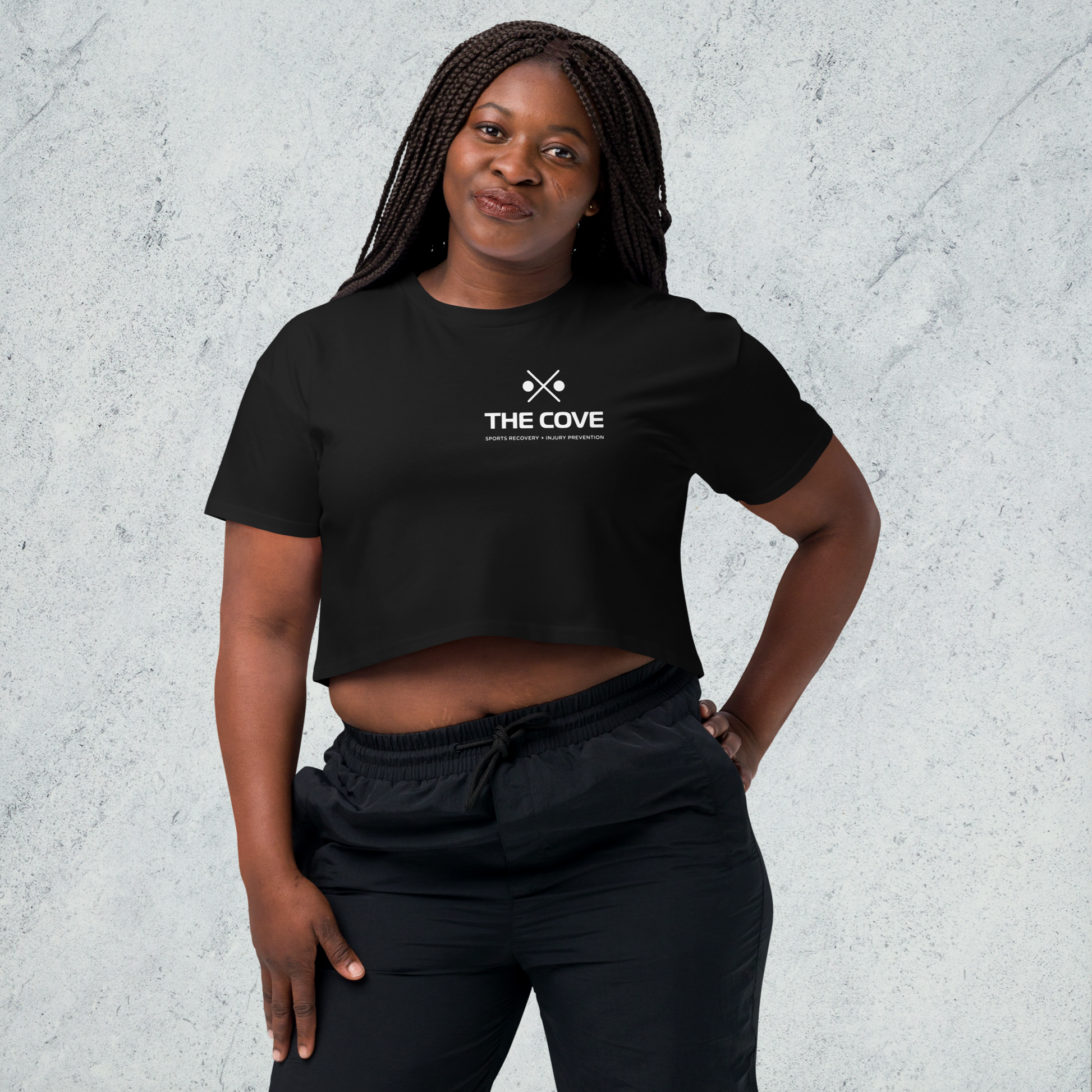 Rep The Cove as your sanctuary for Sports Recovery and Injury Prevention with our incredibly soft, cropped, rib tee.
